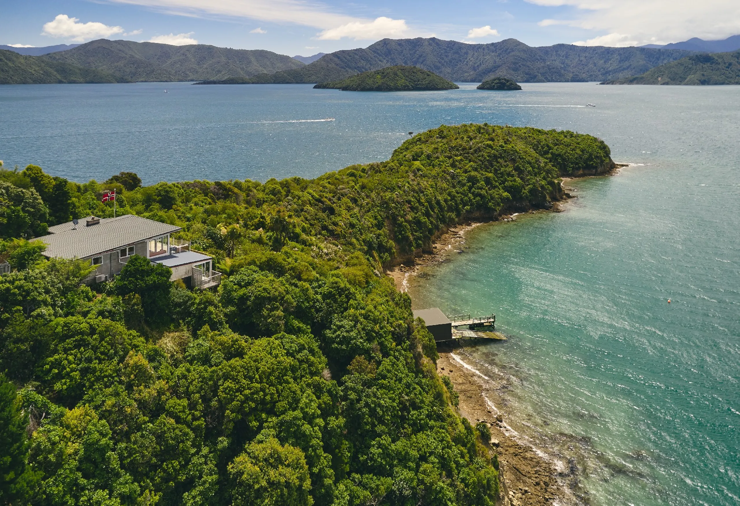 First time ever offered for sale is this amazing property. Enjoying a northern aspect with an unobstructed 270 degree outlook over the Marlborough sounds, this appealing property has the best of both worlds with road access plus a secluded beach with shared jetty and boat shed. Included in the sale is a registered mooring for a 15 meter vessel. All this is complimented by an exceptionally sunny well-maintained four bedroom home. The spacious, exceptionally sunny living area has wonderful views over Queen Charlotte Sound through to Whatamango Bay. There are four bedrooms offering sleeping for 9 adults. There is a separate kitchenette and all rooms open onto expansive decking and outdoor living areas, complimented by a modern spa pool. All this is just 10 minutes drive from Picton town.